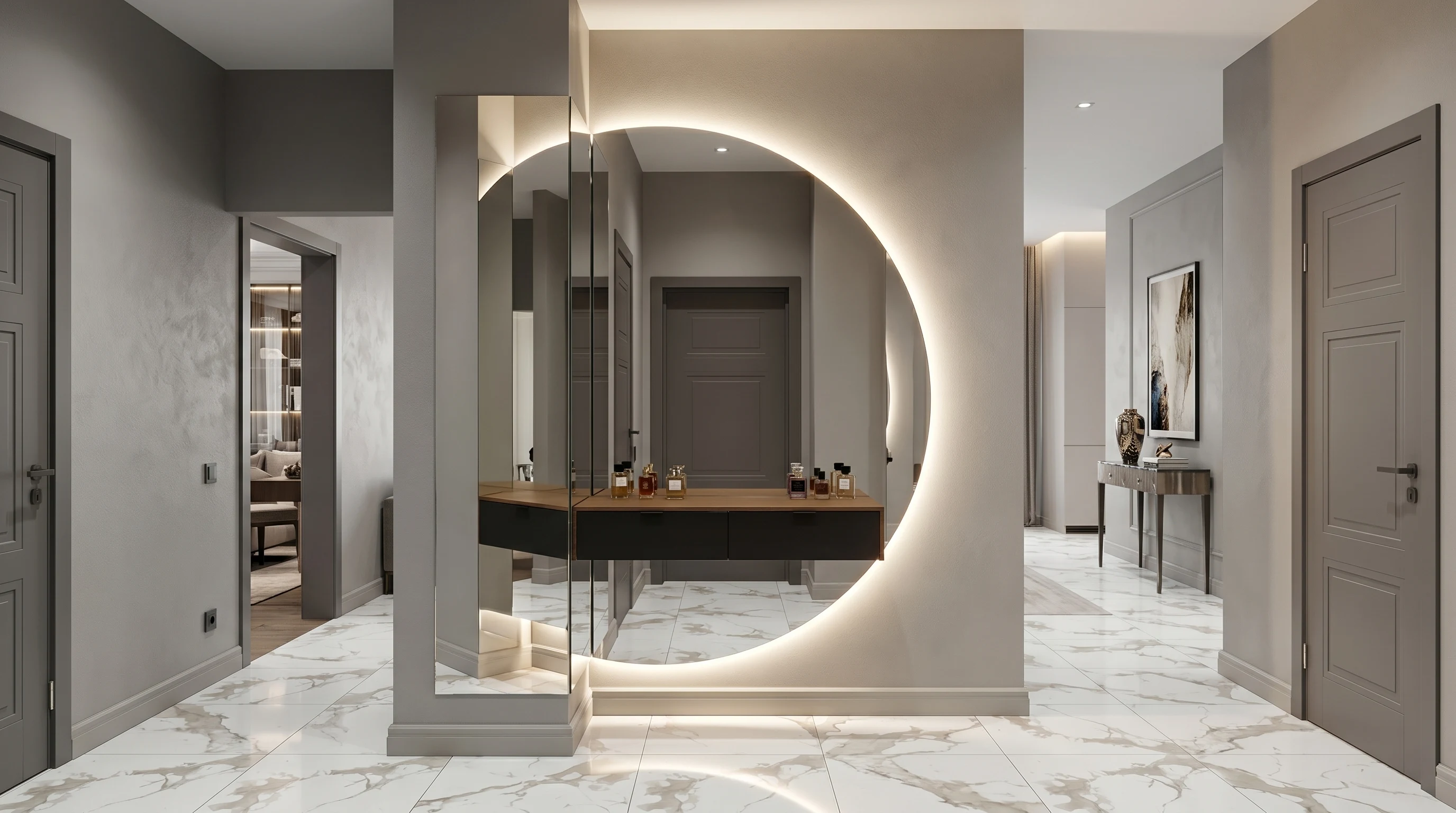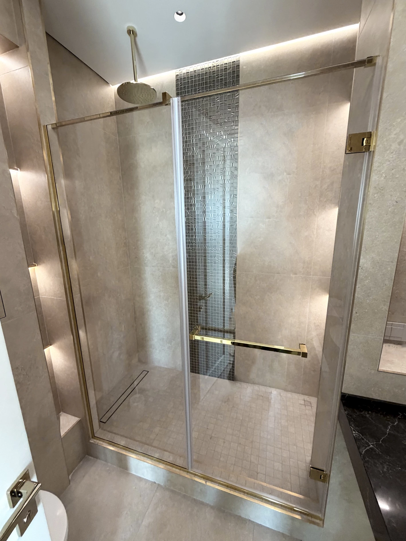 Стекло с зеркальным напылением, или зеркало-шпион. С одной стороны оно выглядит как слегка затемненное стекло, по другую сторону как обычное зеркало.