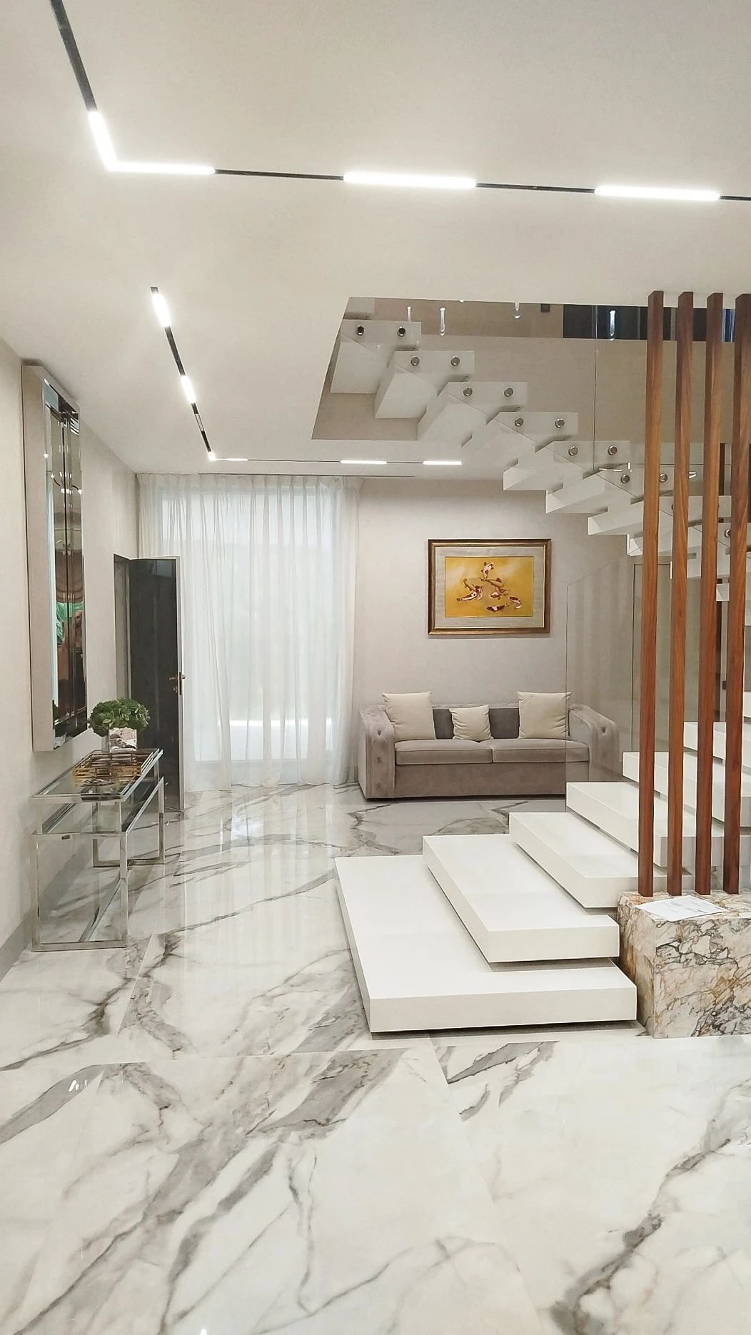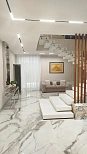 - Стеклянное ограждение отлично сочетается с деревом, металлом и мрамором. Подойдет также и для общественных пространств.