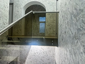 Стеклянное ограждение из темного стекла украсило мраморную лестницу клиента.