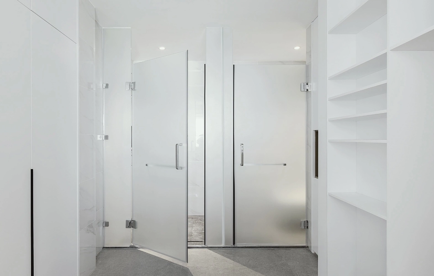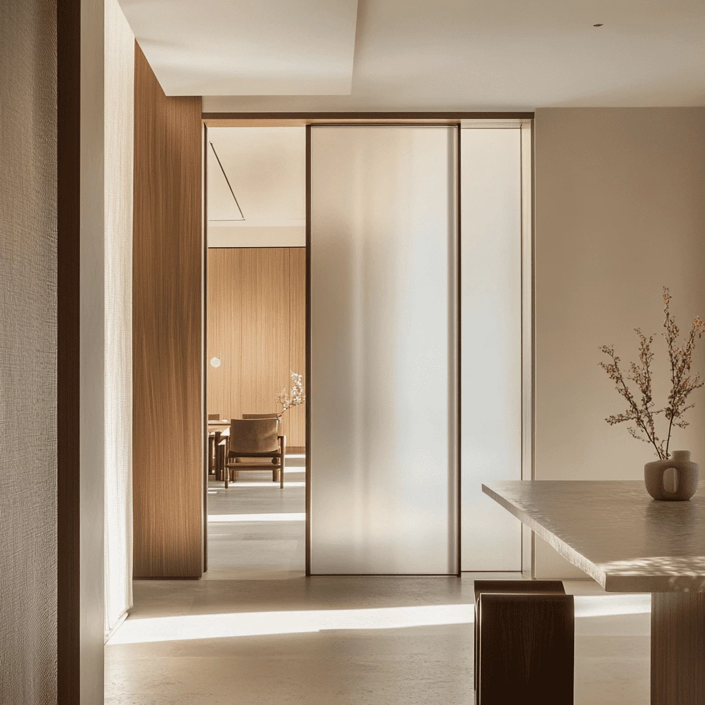 Конструкция подходит как для торговых центров и офисных помещений, так и для использования в жилых домах и квартирах. После установки двери количество света в комнатах не уменьшится, а все нужные детали будут надежно скрыты от посторонних глаз. Межкомнатные матовые двери можно устанавливаться даже в ванных и туалетных комнатах.