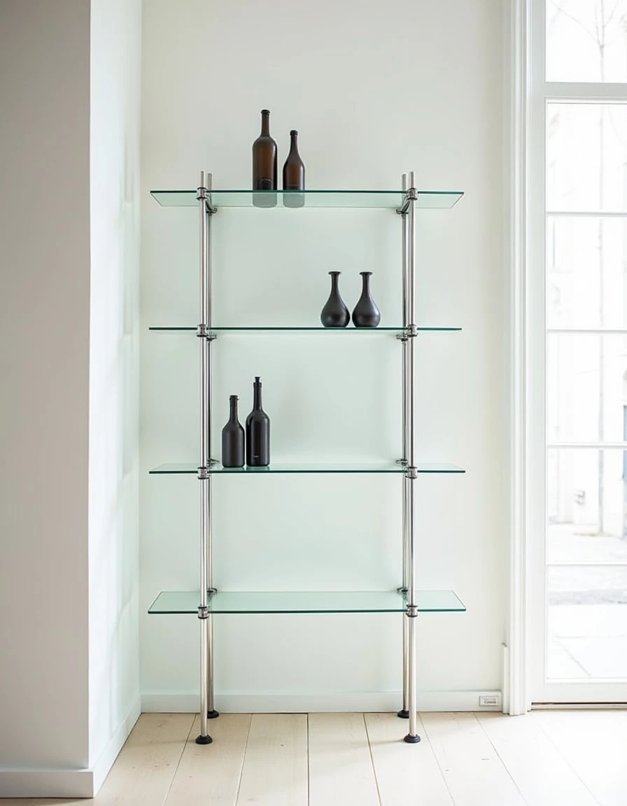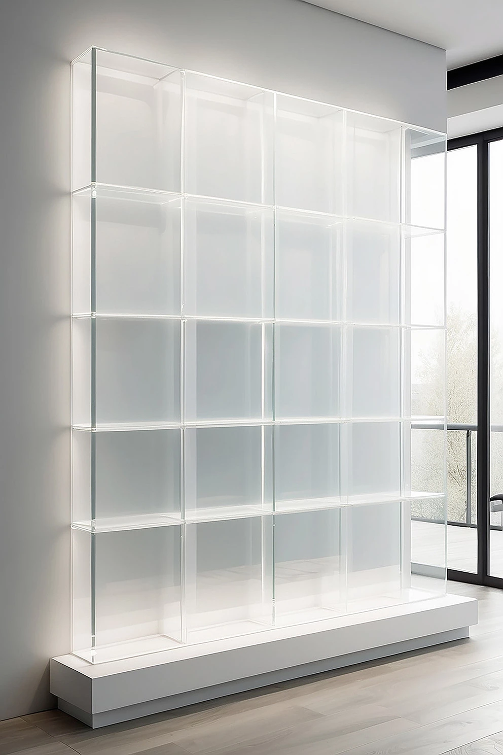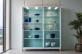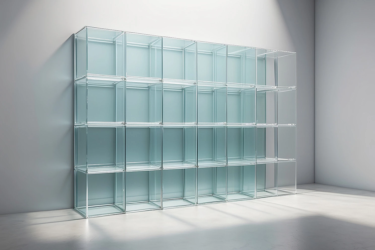 А еще стеллажи и витрины из стекла очень популярны, т.к. прозрачность стекла обеспечивает максимальный обзор продукции практически с любой стороны.