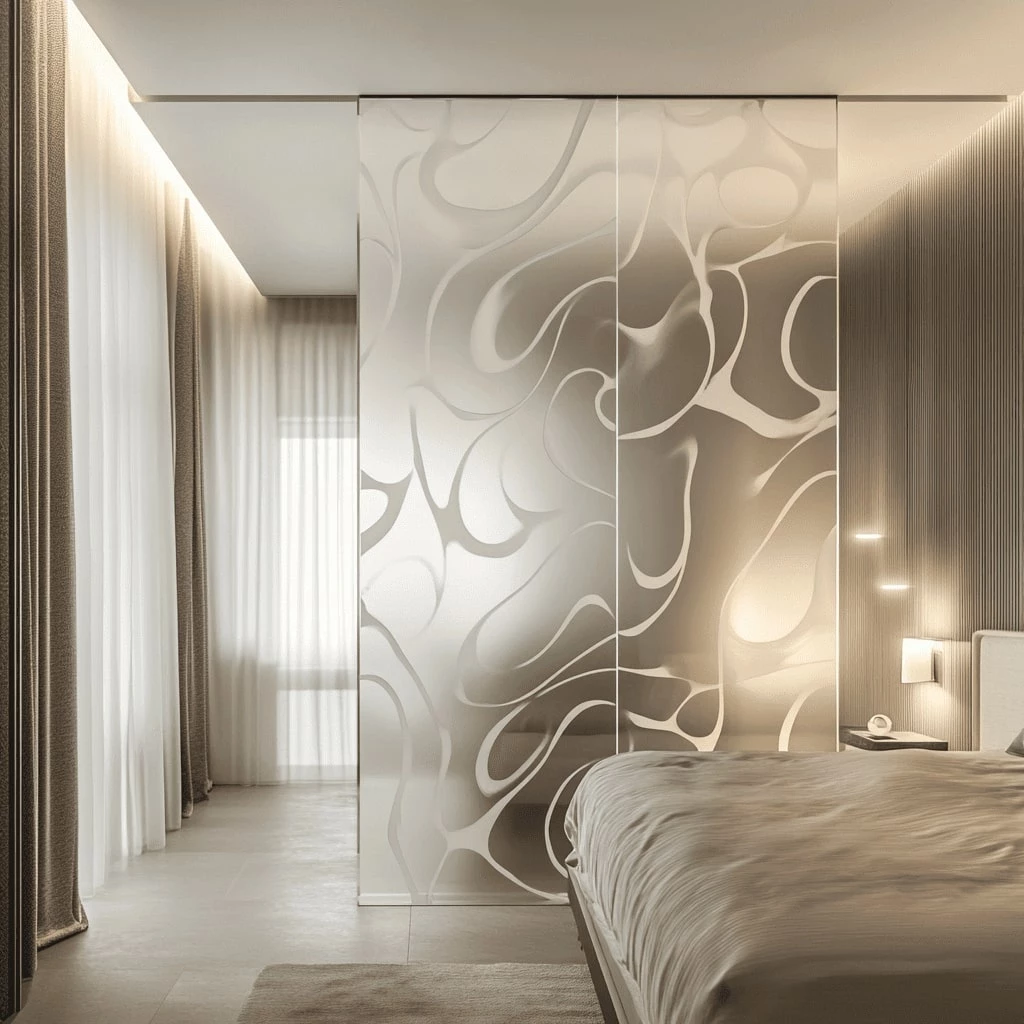 Вы можете использовать матовые витражи как самостоятельные интерьерные решения, так и в качестве элементов, которые дополняют общую картину. Например, для шкафов-купе, гардеробных, межкомнатных дверей и перегородок, вставок в стеклянные и зеркальнеы ниши и проемы. И это далеко не все варианты. Фантазируйте!